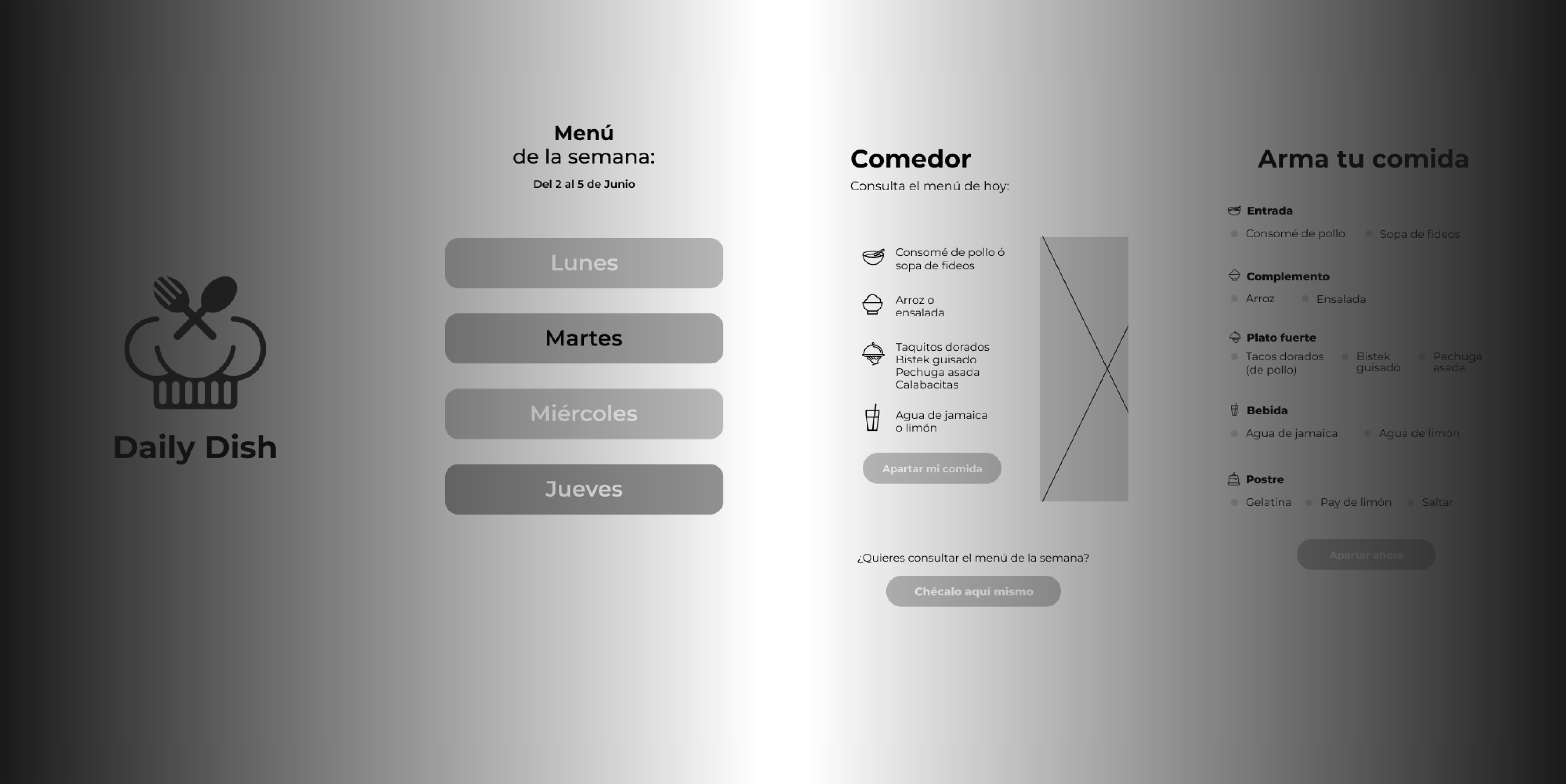 Throughout the development of Daily Dish, i relied on Design Thinking methodologies to focus on user needs and experiences. Simultaneously, we employed Lean UX principles to optimize the development process, prioritizing the creation of a minimum viable product and obtaining constant feedback, which allowed us to deliver a high-quality solution in a timely and cost-effective manner